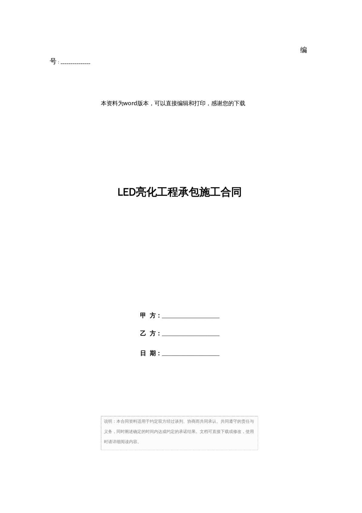 不久前,最新文档《LED亮化工程承包施工合同》全文正式在本站发布,感兴趣的用户可以下载阅读。 声明:本站所有文章,如无特殊说明或标注,均为本站原创发布。任何个人或组织,在未征得本站同意时,禁止复制、盗用、采集、发布本站内容到任何网站、书籍等各类媒体平台。如若本站内容侵犯了原著者的合法权益,可联系我们进行处理。