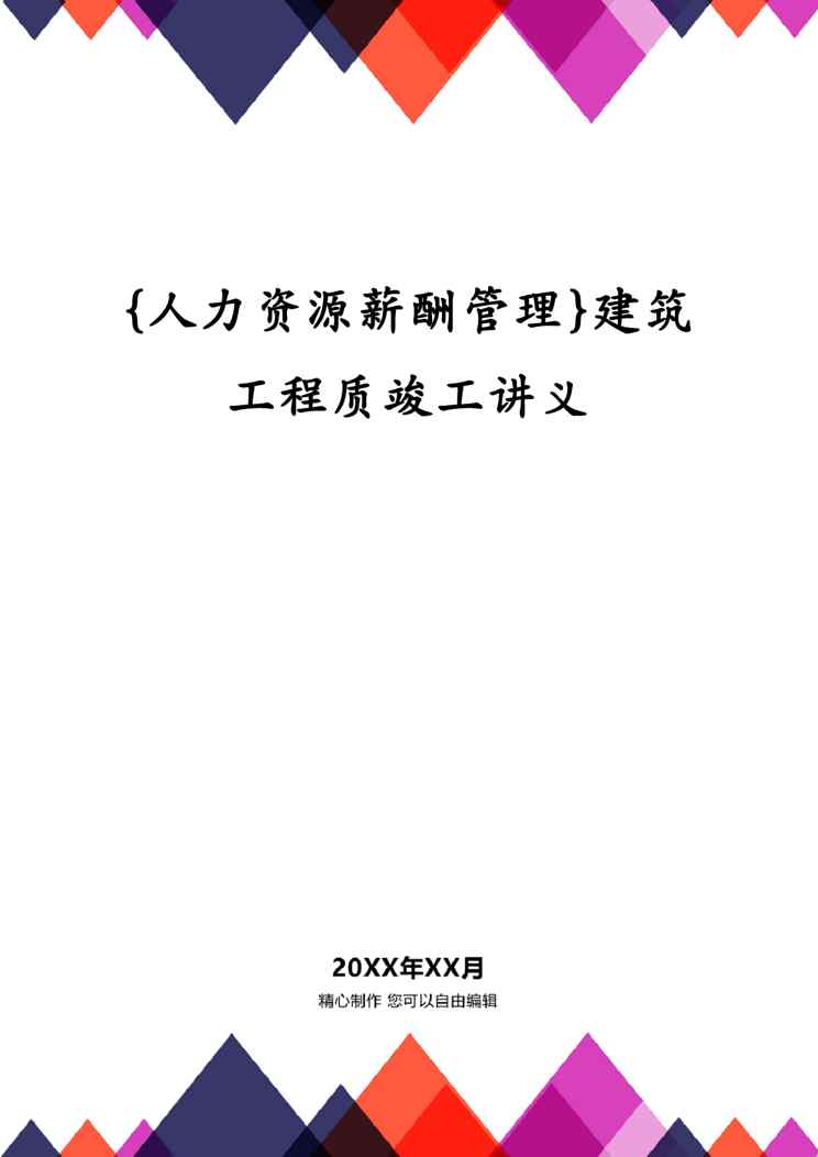 本站正式发布了《{人力资源薪酬管理}建筑工程质竣工讲义》文档,文档详细内容可下载阅读。 声明:本站所有文章,如无特殊说明或标注,均为本站原创发布。任何个人或组织,在未征得本站同意时,禁止复制、盗用、采集、发布本站内容到任何网站、书籍等各类媒体平台。如若本站内容侵犯了原著者的合法权益,可联系我们进行处理。