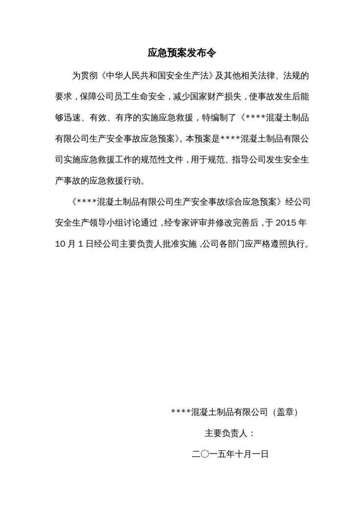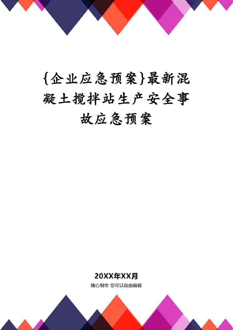 本站资深用户发布了最新的《{企业应急预案}最新混凝土搅拌站生产安全事故应急预案》文档,以下内容为预览,详细内容可下载阅读。 声明:本站所有文章,如无特殊说明或标注,均为本站原创发布。任何个人或组织,在未征得本站同意时,禁止复制、盗用、采集、发布本站内容到任何网站、书籍等各类媒体平台。如若本站内容侵犯了原著者的合法权益,可联系我们进行处理。