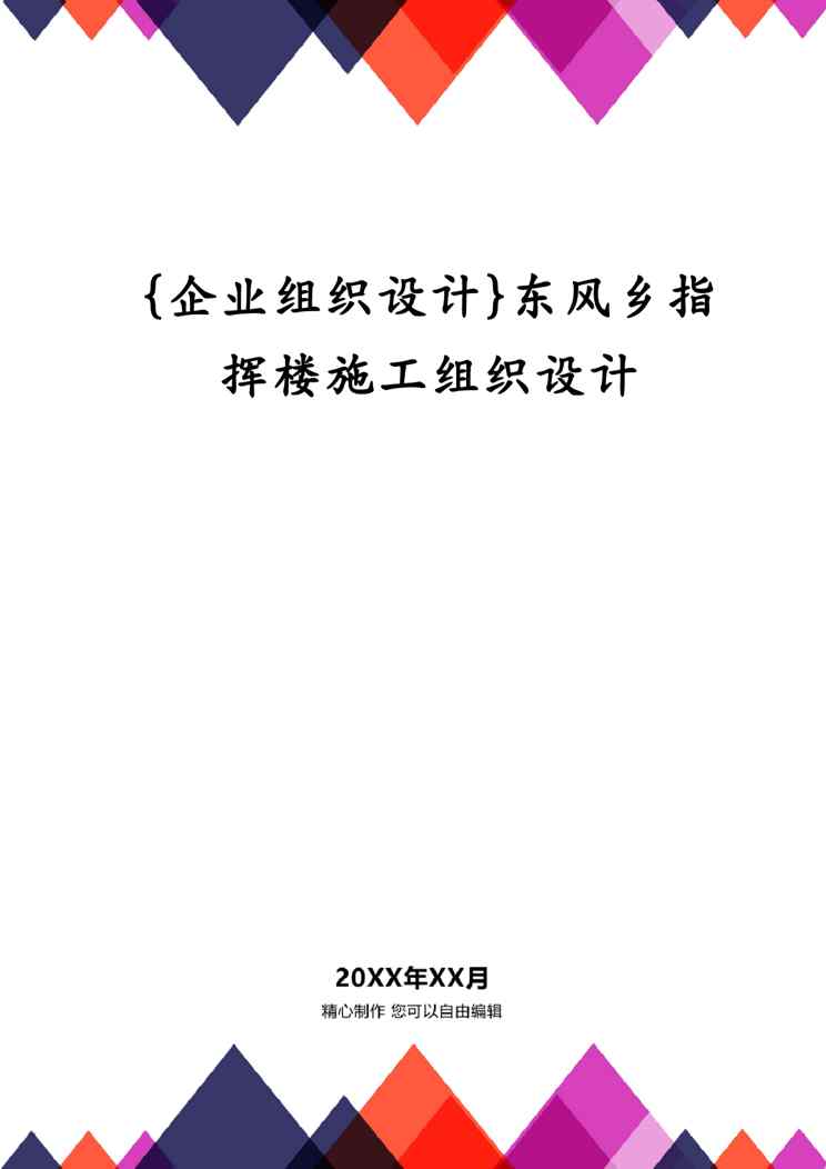 不久前,最新文档《{企业组织设计}东风乡指挥楼施工组织设计》全文正式在本站发布,感兴趣的用户可以下载阅读。 声明:本站所有文章,如无特殊说明或标注,均为本站原创发布。任何个人或组织,在未征得本站同意时,禁止复制、盗用、采集、发布本站内容到任何网站、书籍等各类媒体平台。如若本站内容侵犯了原著者的合法权益,可联系我们进行处理。