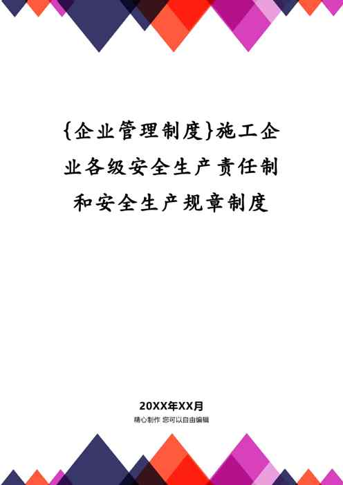 本站资深用户发布了最新的《{企业管理制度}施工企业各级安全生产责任制和安全生产规章制度》文档,以下内容为预览,详细内容可下载阅读。 声明:本站所有文章,如无特殊说明或标注,均为本站原创发布。任何个人或组织,在未征得本站同意时,禁止复制、盗用、采集、发布本站内容到任何网站、书籍等各类媒体平台。如若本站内容侵犯了原著者的合法权益,可联系我们进行处理。