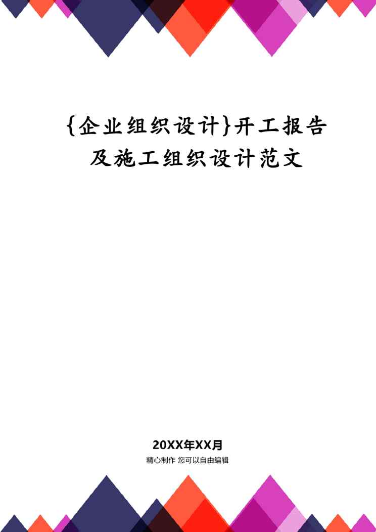 本站正式发布了《{企业组织设计}开工报告及施工组织设计范文》文档,文档详细内容可下载阅读。 声明:本站所有文章,如无特殊说明或标注,均为本站原创发布。任何个人或组织,在未征得本站同意时,禁止复制、盗用、采集、发布本站内容到任何网站、书籍等各类媒体平台。如若本站内容侵犯了原著者的合法权益,可联系我们进行处理。