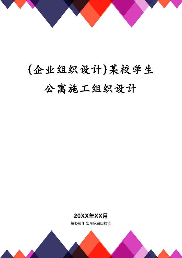 不久前,最新文档《{企业组织设计}某校学生公寓施工组织设计》全文正式在本站发布,感兴趣的用户可以下载阅读。 声明:本站所有文章,如无特殊说明或标注,均为本站原创发布。任何个人或组织,在未征得本站同意时,禁止复制、盗用、采集、发布本站内容到任何网站、书籍等各类媒体平台。如若本站内容侵犯了原著者的合法权益,可联系我们进行处理。