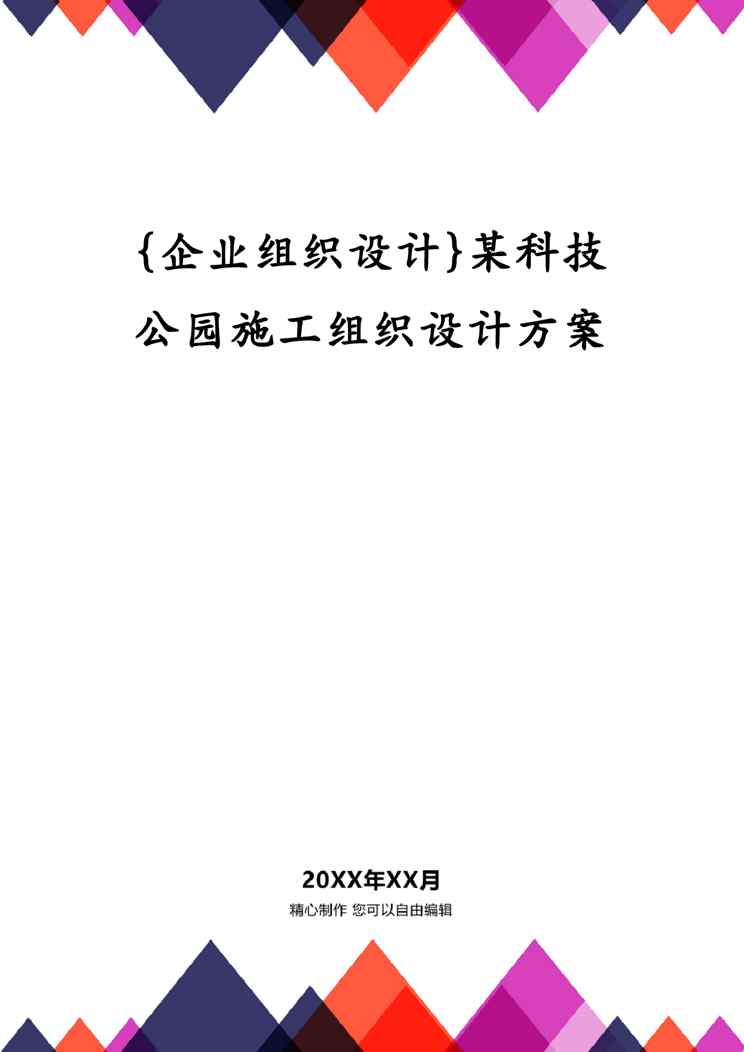 本站正式发布了《{企业组织设计}某科技公园施工组织设计方案》文档,文档详细内容可下载阅读。 声明:本站所有文章,如无特殊说明或标注,均为本站原创发布。任何个人或组织,在未征得本站同意时,禁止复制、盗用、采集、发布本站内容到任何网站、书籍等各类媒体平台。如若本站内容侵犯了原著者的合法权益,可联系我们进行处理。
