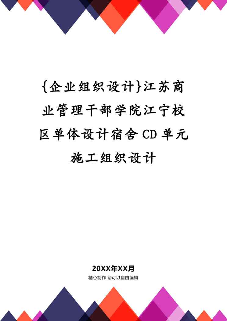 不久前,最新文档《{企业组织设计}江苏商业管理干部学院江宁校区单体设计宿舍CD单元施工组织设计》全文正式在本站发布,感兴趣的用户可以下载阅读。 声明:本站所有文章,如无特殊说明或标注,均为本站原创发布。任何个人或组织,在未征得本站同意时,禁止复制、盗用、采集、发布本站内容到任何网站、书籍等各类媒体平台。如若本站内容侵犯了原著者的合法权益,可联系我们进行处理。