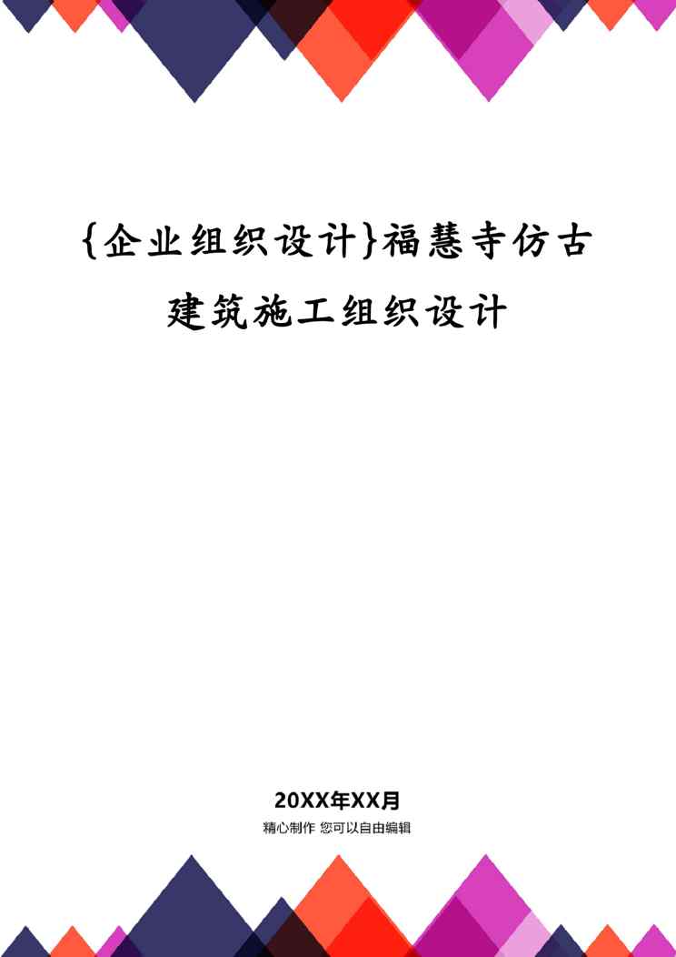 本站资深用户发布了最新的《{企业组织设计}福慧寺仿古建筑施工组织设计》文档,以下内容为预览,详细内容可下载阅读。