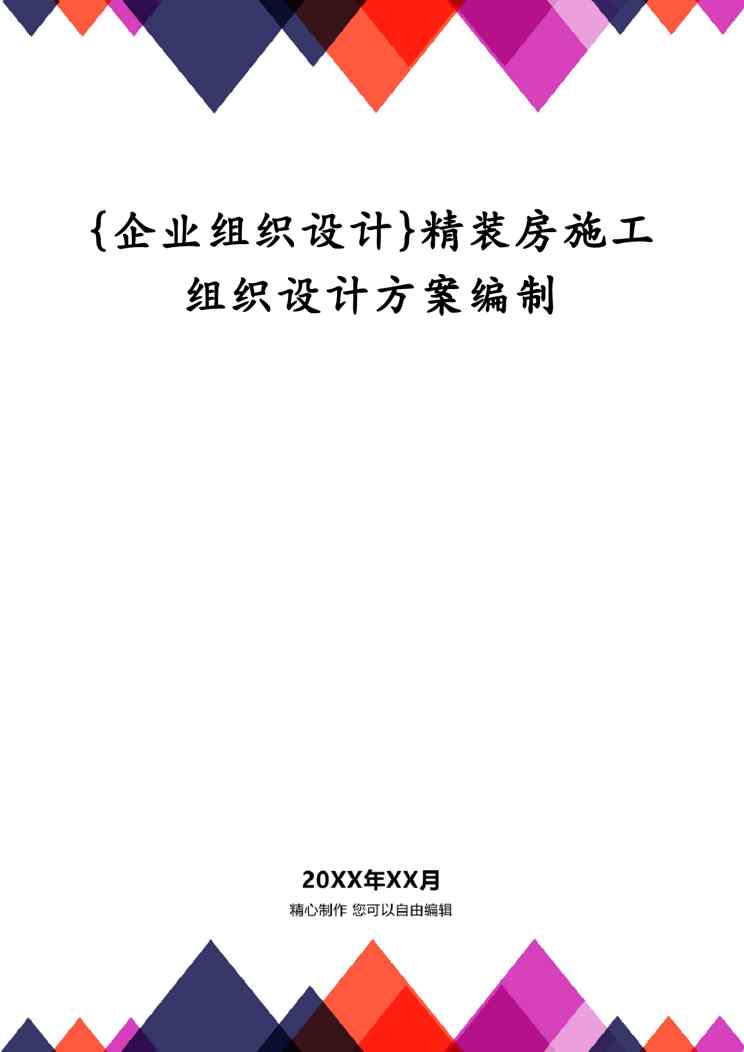 本站资深用户发布了最新的《{企业组织设计}精装房施工组织设计方案编制》文档,以下内容为预览,详细内容可下载阅读。 声明:本站所有文章,如无特殊说明或标注,均为本站原创发布。任何个人或组织,在未征得本站同意时,禁止复制、盗用、采集、发布本站内容到任何网站、书籍等各类媒体平台。如若本站内容侵犯了原著者的合法权益,可联系我们进行处理。