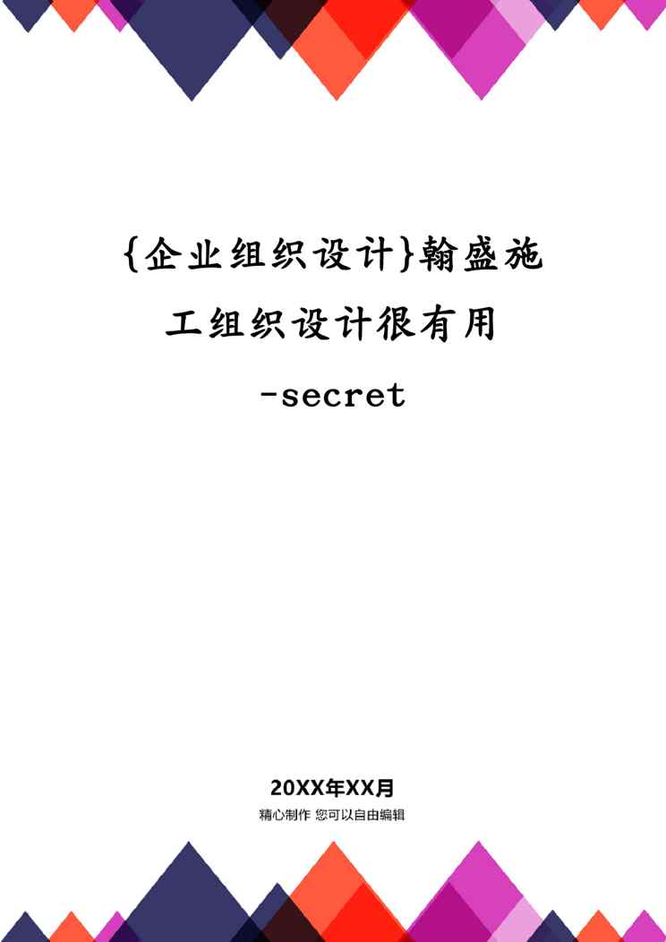 本站正式发布了《{企业组织设计}翰盛施工组织设计很有用-secret》文档,文档详细内容可下载阅读。 声明:本站所有文章,如无特殊说明或标注,均为本站原创发布。任何个人或组织,在未征得本站同意时,禁止复制、盗用、采集、发布本站内容到任何网站、书籍等各类媒体平台。如若本站内容侵犯了原著者的合法权益,可联系我们进行处理。