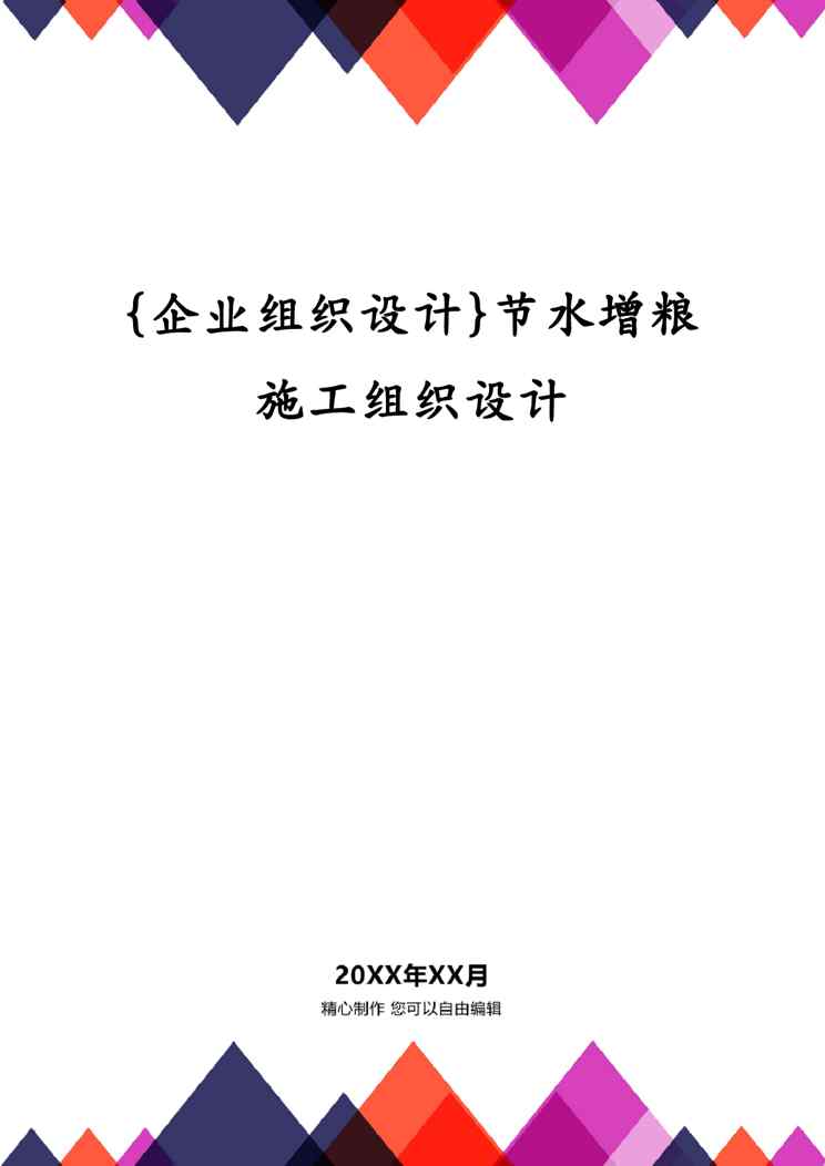 本站资深用户发布了最新的《{企业组织设计}节水增粮施工组织设计》文档,以下内容为预览,详细内容可下载阅读。 声明:本站所有文章,如无特殊说明或标注,均为本站原创发布。任何个人或组织,在未征得本站同意时,禁止复制、盗用、采集、发布本站内容到任何网站、书籍等各类媒体平台。如若本站内容侵犯了原著者的合法权益,可联系我们进行处理。