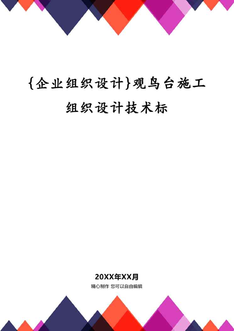 本站资深用户发布了最新的《{企业组织设计}观鸟台施工组织设计技术标》文档,以下内容为预览,详细内容可下载阅读。 声明:本站所有文章,如无特殊说明或标注,均为本站原创发布。任何个人或组织,在未征得本站同意时,禁止复制、盗用、采集、发布本站内容到任何网站、书籍等各类媒体平台。如若本站内容侵犯了原著者的合法权益,可联系我们进行处理。
