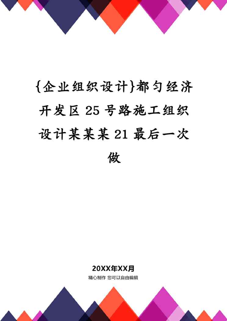 不久前,最新文档《{企业组织设计}都匀经济开发区25号路施工组织设计某某某21最后一次做》全文正式在本站发布,感兴趣的用户可以下载阅读。 声明:本站所有文章,如无特殊说明或标注,均为本站原创发布。任何个人或组织,在未征得本站同意时,禁止复制、盗用、采集、发布本站内容到任何网站、书籍等各类媒体平台。如若本站内容侵犯了原著者的合法权益,可联系我们进行处理。
