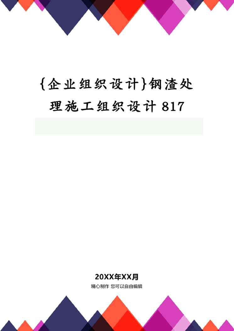 不久前,最新文档《{企业组织设计}钢渣处理施工组织设计817》全文正式在本站发布,感兴趣的用户可以下载阅读。 声明:本站所有文章,如无特殊说明或标注,均为本站原创发布。任何个人或组织,在未征得本站同意时,禁止复制、盗用、采集、发布本站内容到任何网站、书籍等各类媒体平台。如若本站内容侵犯了原著者的合法权益,可联系我们进行处理。