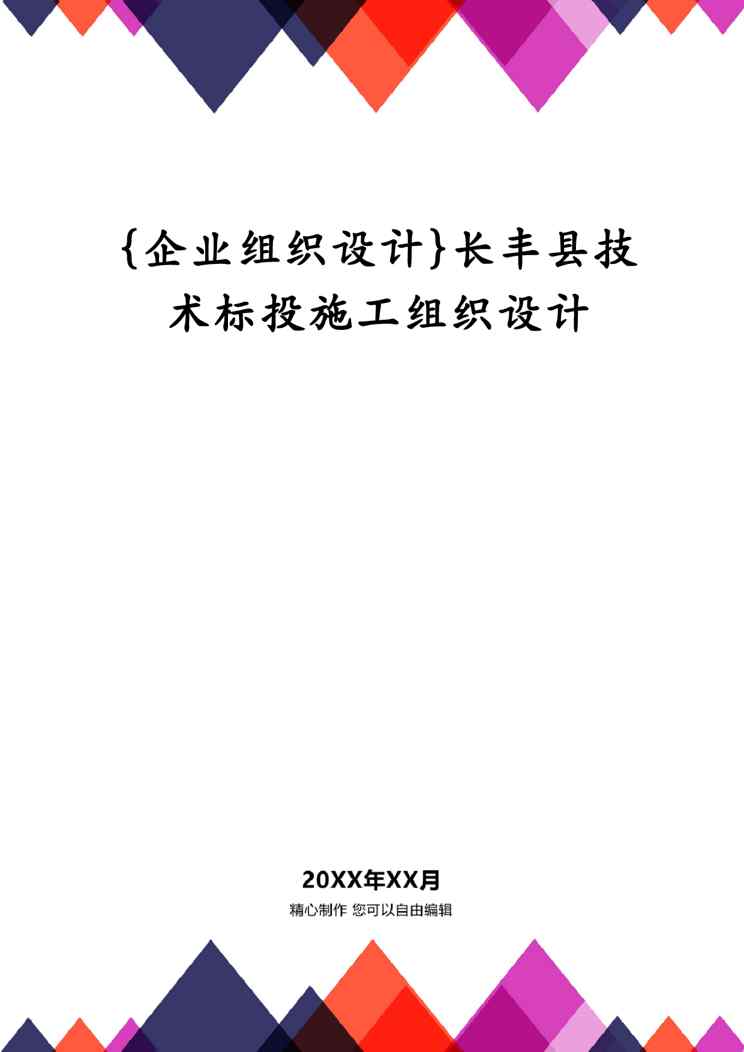 本站资深用户发布了最新的《{企业组织设计}长丰县技术标投施工组织设计》文档,以下内容为预览,详细内容可下载阅读。 声明:本站所有文章,如无特殊说明或标注,均为本站原创发布。任何个人或组织,在未征得本站同意时,禁止复制、盗用、采集、发布本站内容到任何网站、书籍等各类媒体平台。如若本站内容侵犯了原著者的合法权益,可联系我们进行处理。