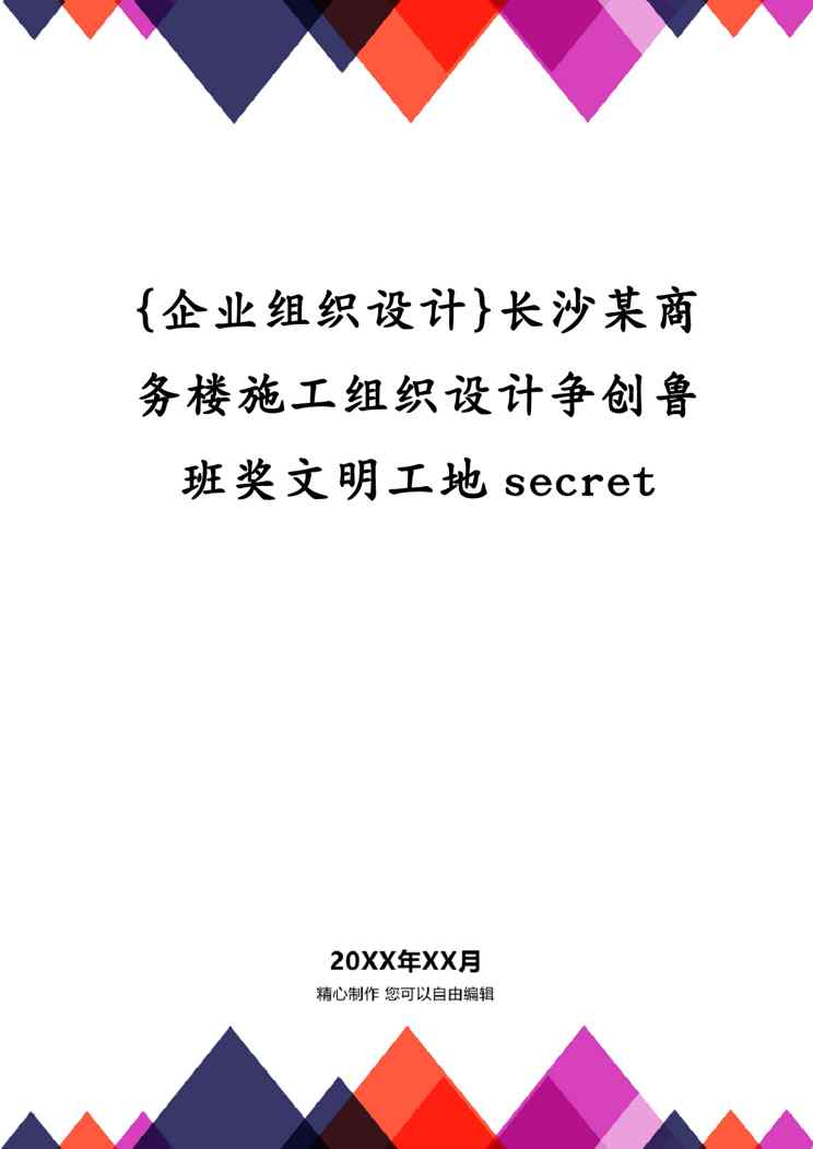本站正式发布了《{企业组织设计}长沙某商务楼施工组织设计争创鲁班奖文明工地secret》文档,文档详细内容可下载阅读。 声明:本站所有文章,如无特殊说明或标注,均为本站原创发布。任何个人或组织,在未征得本站同意时,禁止复制、盗用、采集、发布本站内容到任何网站、书籍等各类媒体平台。如若本站内容侵犯了原著者的合法权益,可联系我们进行处理。