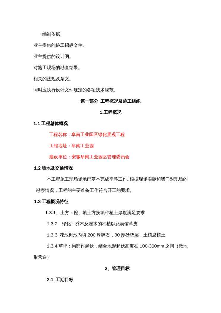 不久前,最新文档《{企业组织设计}阜南工业园去绿化景观y一标施工组织设计》全文正式在本站发布,感兴趣的用户可以下载阅读。 声明:本站所有文章,如无特殊说明或标注,均为本站原创发布。任何个人或组织,在未征得本站同意时,禁止复制、盗用、采集、发布本站内容到任何网站、书籍等各类媒体平台。如若本站内容侵犯了原著者的合法权益,可联系我们进行处理。