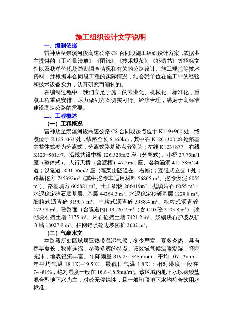 本站资深用户发布了最新的《{企业组织设计}雷崇高速公路施工组织设计方案》文档,以下内容为预览,详细内容可下载阅读。 声明:本站所有文章,如无特殊说明或标注,均为本站原创发布。任何个人或组织,在未征得本站同意时,禁止复制、盗用、采集、发布本站内容到任何网站、书籍等各类媒体平台。如若本站内容侵犯了原著者的合法权益,可联系我们进行处理。