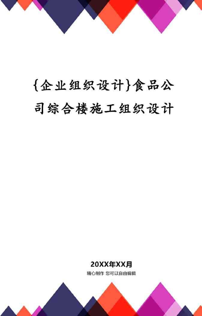 本站资深用户发布了最新的《{企业组织设计}食品公司综合楼施工组织设计》文档,以下内容为预览,详细内容可下载阅读。 声明:本站所有文章,如无特殊说明或标注,均为本站原创发布。任何个人或组织,在未征得本站同意时,禁止复制、盗用、采集、发布本站内容到任何网站、书籍等各类媒体平台。如若本站内容侵犯了原著者的合法权益,可联系我们进行处理。