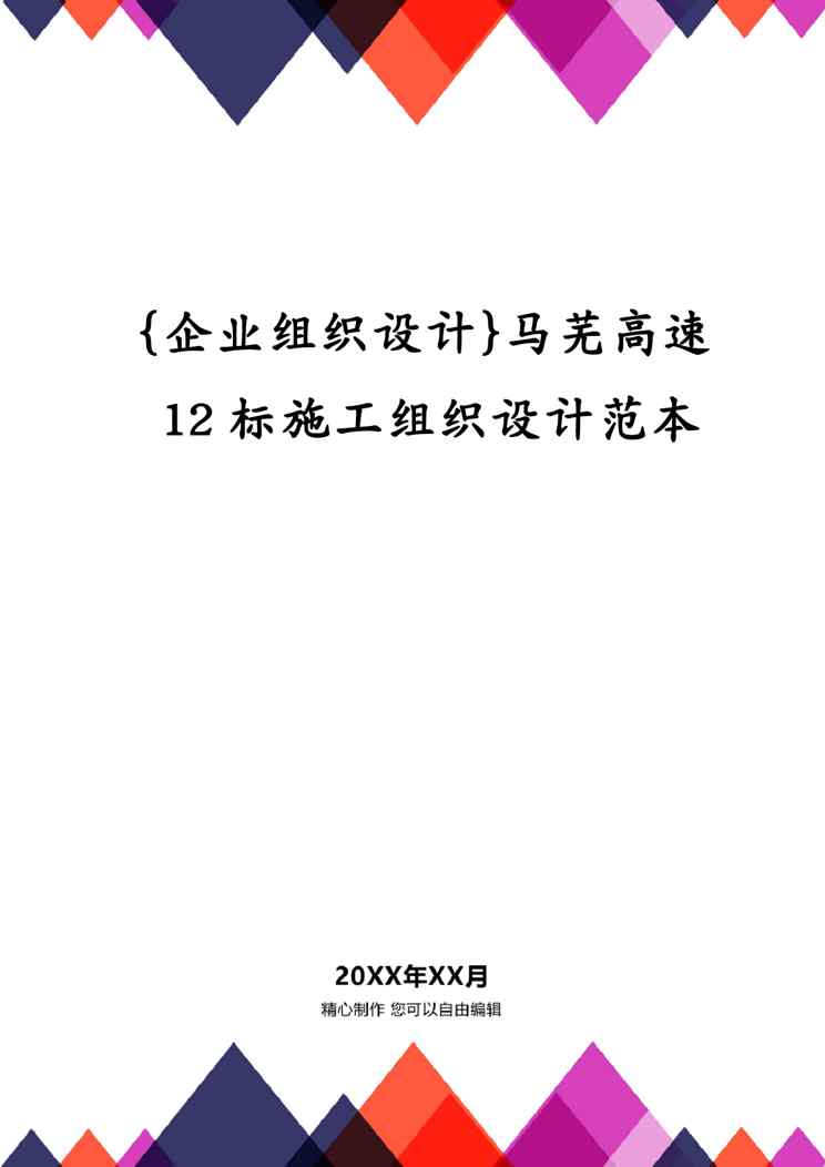 不久前,最新文档《{企业组织设计}马芜高速12标施工组织设计范本》全文正式在本站发布,感兴趣的用户可以下载阅读。 声明:本站所有文章,如无特殊说明或标注,均为本站原创发布。任何个人或组织,在未征得本站同意时,禁止复制、盗用、采集、发布本站内容到任何网站、书籍等各类媒体平台。如若本站内容侵犯了原著者的合法权益,可联系我们进行处理。