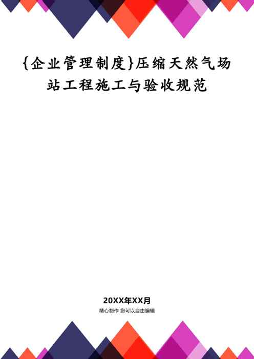 本站资深用户发布了最新的《{企业管理制度}压缩天然气场站工程施工与验收规范》文档,以下内容为预览,详细内容可下载阅读。 声明:本站所有文章,如无特殊说明或标注,均为本站原创发布。任何个人或组织,在未征得本站同意时,禁止复制、盗用、采集、发布本站内容到任何网站、书籍等各类媒体平台。如若本站内容侵犯了原著者的合法权益,可联系我们进行处理。