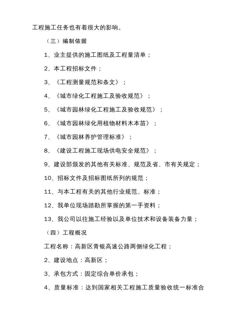 本站资深用户发布了最新的《{企业组织设计}高速公路绿化施工组织设计概述》文档,以下内容为预览,详细内容可下载阅读。 声明:本站所有文章,如无特殊说明或标注,均为本站原创发布。任何个人或组织,在未征得本站同意时,禁止复制、盗用、采集、发布本站内容到任何网站、书籍等各类媒体平台。如若本站内容侵犯了原著者的合法权益,可联系我们进行处理。