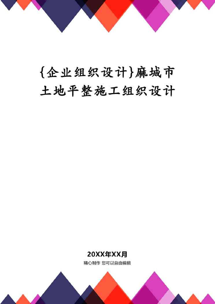 本站正式发布了《{企业组织设计}麻城市土地平整施工组织设计》文档,文档详细内容可下载阅读。 声明:本站所有文章,如无特殊说明或标注,均为本站原创发布。任何个人或组织,在未征得本站同意时,禁止复制、盗用、采集、发布本站内容到任何网站、书籍等各类媒体平台。如若本站内容侵犯了原著者的合法权益,可联系我们进行处理。