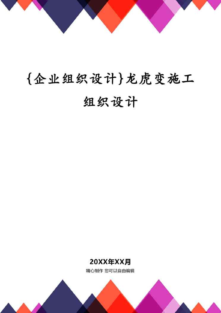 不久前,最新文档《{企业组织设计}龙虎变施工组织设计》全文正式在本站发布,感兴趣的用户可以下载阅读。 声明:本站所有文章,如无特殊说明或标注,均为本站原创发布。任何个人或组织,在未征得本站同意时,禁止复制、盗用、采集、发布本站内容到任何网站、书籍等各类媒体平台。如若本站内容侵犯了原著者的合法权益,可联系我们进行处理。
