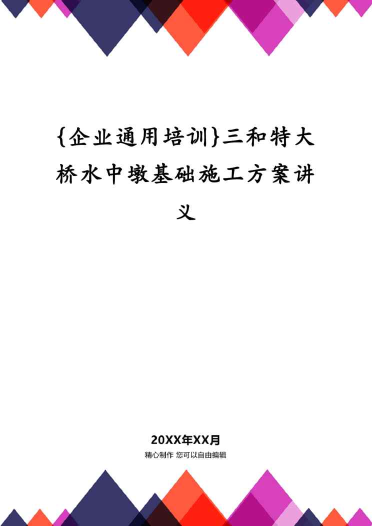 不久前,最新文档《{企业通用培训}三和特大桥水中墩基础施工方案讲义》全文正式在本站发布,感兴趣的用户可以下载阅读。 声明:本站所有文章,如无特殊说明或标注,均为本站原创发布。任何个人或组织,在未征得本站同意时,禁止复制、盗用、采集、发布本站内容到任何网站、书籍等各类媒体平台。如若本站内容侵犯了原著者的合法权益,可联系我们进行处理。