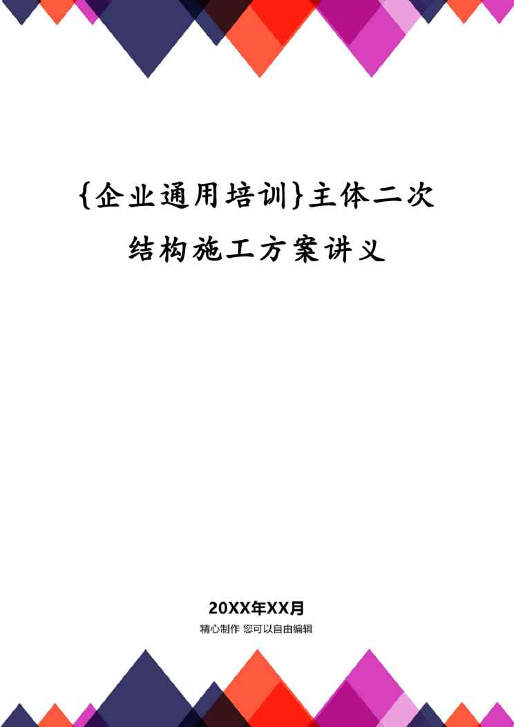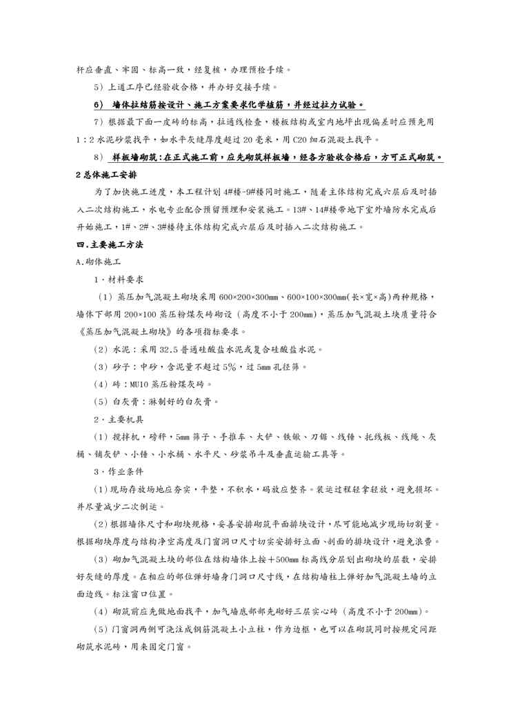 本站资深用户发布了最新的《{企业通用培训}主体二次结构施工方案讲义》文档,以下内容为预览,详细内容可下载阅读。 声明:本站所有文章,如无特殊说明或标注,均为本站原创发布。任何个人或组织,在未征得本站同意时,禁止复制、盗用、采集、发布本站内容到任何网站、书籍等各类媒体平台。如若本站内容侵犯了原著者的合法权益,可联系我们进行处理。