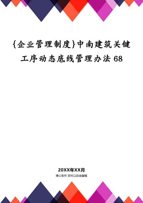 不久前,最新文档《{企业管理制度}中南建筑关键工序动态底线管理办法68》全文正式在本站发布,感兴趣的用户可以下载阅读。 声明:本站所有文章,如无特殊说明或标注,均为本站原创发布。任何个人或组织,在未征得本站同意时,禁止复制、盗用、采集、发布本站内容到任何网站、书籍等各类媒体平台。如若本站内容侵犯了原著者的合法权益,可联系我们进行处理。