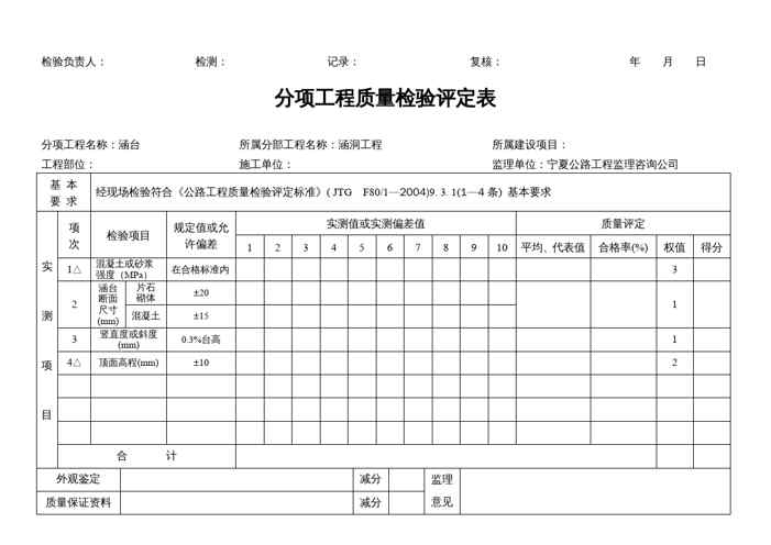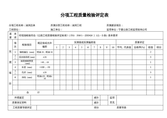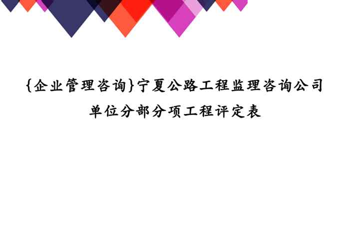 不久前,最新文档《{企业管理咨询}宁夏公路工程监理咨询公司单位分部分项工程评定表》全文正式在本站发布,感兴趣的用户可以下载阅读。 声明:本站所有文章,如无特殊说明或标注,均为本站原创发布。任何个人或组织,在未征得本站同意时,禁止复制、盗用、采集、发布本站内容到任何网站、书籍等各类媒体平台。如若本站内容侵犯了原著者的合法权益,可联系我们进行处理。