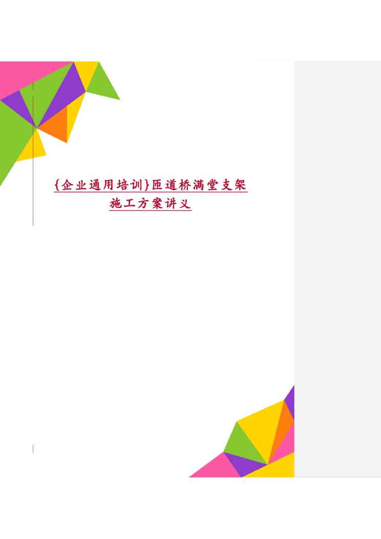 本站资深用户发布了最新的《{企业通用培训}匝道桥满堂支架施工方案讲义1609152384》文档,以下内容为预览,详细内容可下载阅读。 声明:本站所有文章,如无特殊说明或标注,均为本站原创发布。任何个人或组织,在未征得本站同意时,禁止复制、盗用、采集、发布本站内容到任何网站、书籍等各类媒体平台。如若本站内容侵犯了原著者的合法权益,可联系我们进行处理。