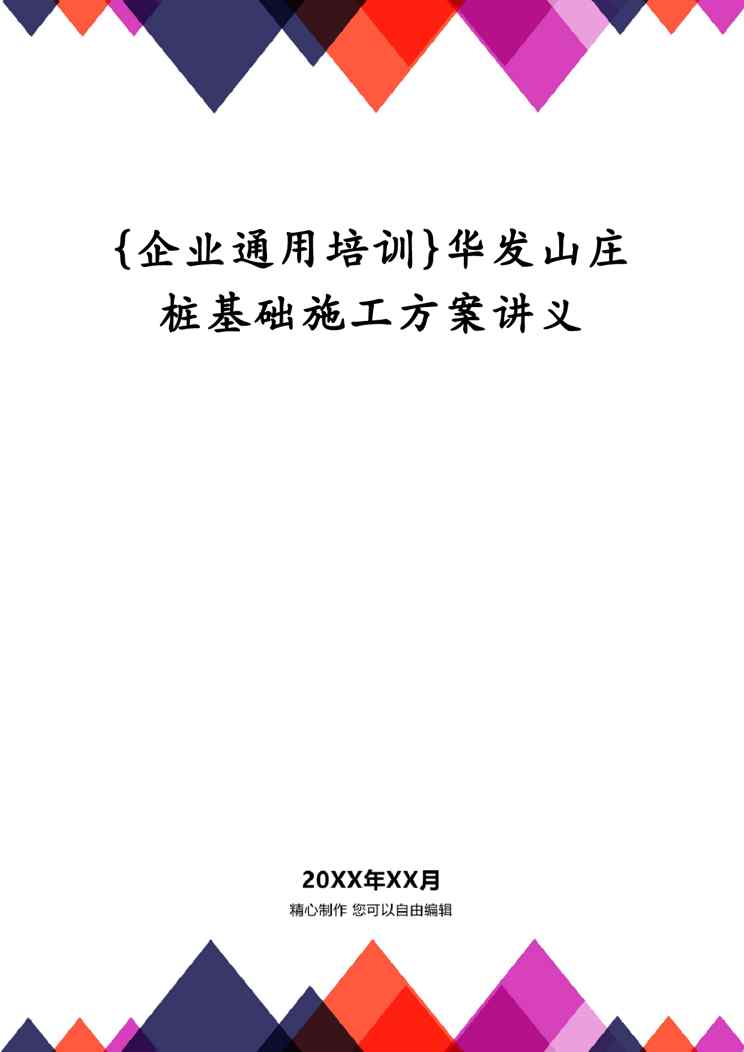 不久前,最新文档《{企业通用培训}华发山庄桩基础施工方案讲义》全文正式在本站发布,感兴趣的用户可以下载阅读。 声明:本站所有文章,如无特殊说明或标注,均为本站原创发布。任何个人或组织,在未征得本站同意时,禁止复制、盗用、采集、发布本站内容到任何网站、书籍等各类媒体平台。如若本站内容侵犯了原著者的合法权益,可联系我们进行处理。