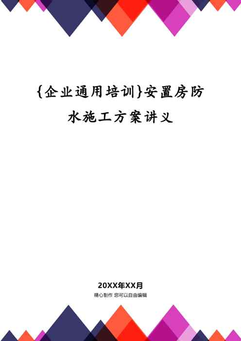 本站正式发布了《{企业通用培训}安置房防水施工方案讲义》文档,文档详细内容可下载阅读。 声明:本站所有文章,如无特殊说明或标注,均为本站原创发布。任何个人或组织,在未征得本站同意时,禁止复制、盗用、采集、发布本站内容到任何网站、书籍等各类媒体平台。如若本站内容侵犯了原著者的合法权益,可联系我们进行处理。