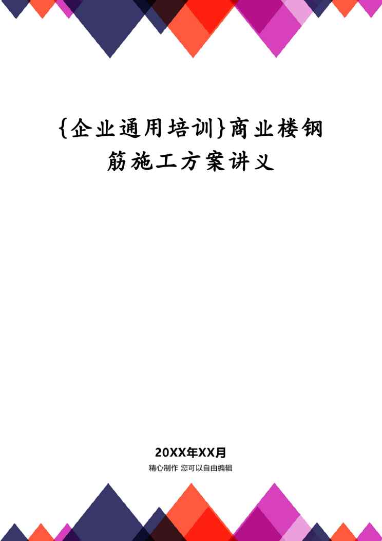 不久前,最新文档《{企业通用培训}商业楼钢筋施工方案讲义》全文正式在本站发布,感兴趣的用户可以下载阅读。 声明:本站所有文章,如无特殊说明或标注,均为本站原创发布。任何个人或组织,在未征得本站同意时,禁止复制、盗用、采集、发布本站内容到任何网站、书籍等各类媒体平台。如若本站内容侵犯了原著者的合法权益,可联系我们进行处理。
