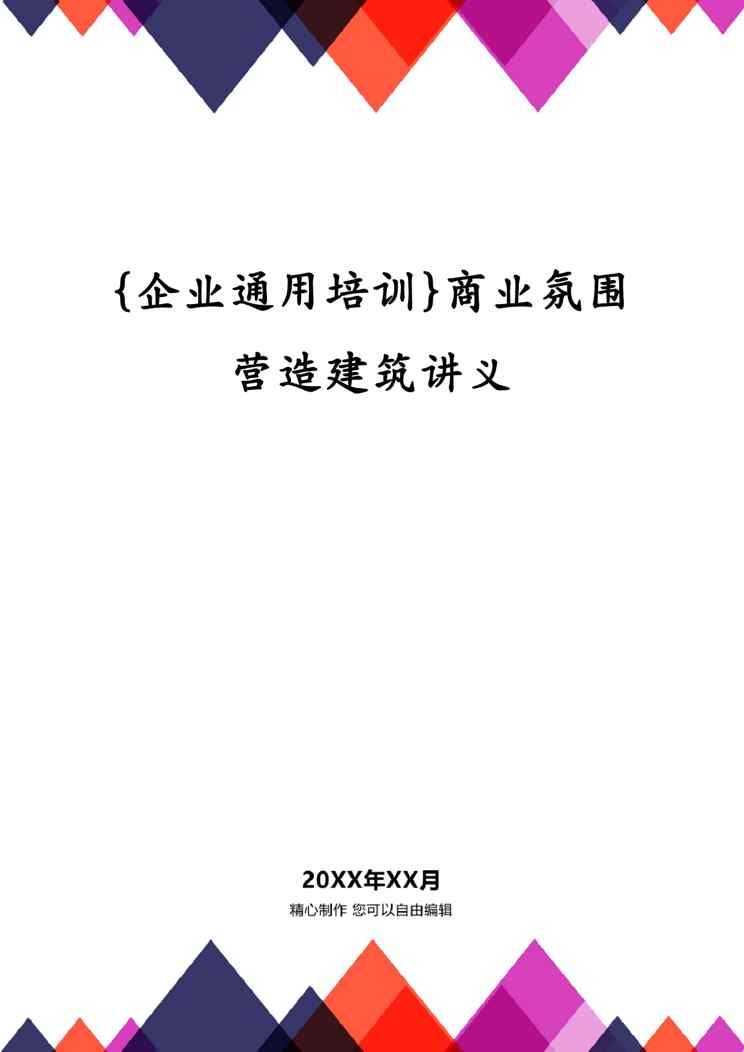 本站资深用户发布了最新的《{企业通用培训}商业氛围营造建筑讲义》文档,以下内容为预览,详细内容可下载阅读。 声明:本站所有文章,如无特殊说明或标注,均为本站原创发布。任何个人或组织,在未征得本站同意时,禁止复制、盗用、采集、发布本站内容到任何网站、书籍等各类媒体平台。如若本站内容侵犯了原著者的合法权益,可联系我们进行处理。