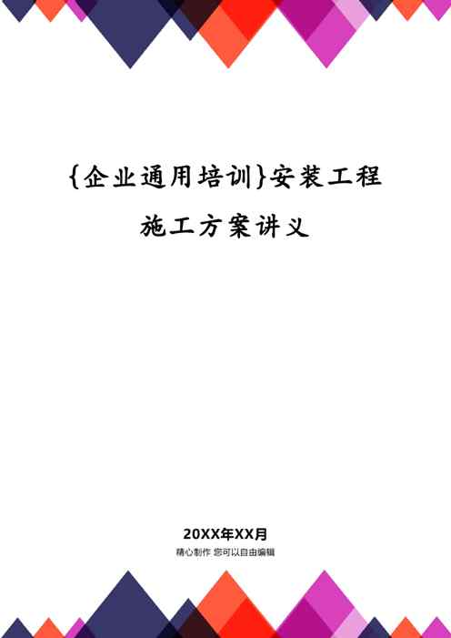 本站资深用户发布了最新的《{企业通用培训}安装工程施工方案讲义》文档,以下内容为预览,详细内容可下载阅读。 声明:本站所有文章,如无特殊说明或标注,均为本站原创发布。任何个人或组织,在未征得本站同意时,禁止复制、盗用、采集、发布本站内容到任何网站、书籍等各类媒体平台。如若本站内容侵犯了原著者的合法权益,可联系我们进行处理。