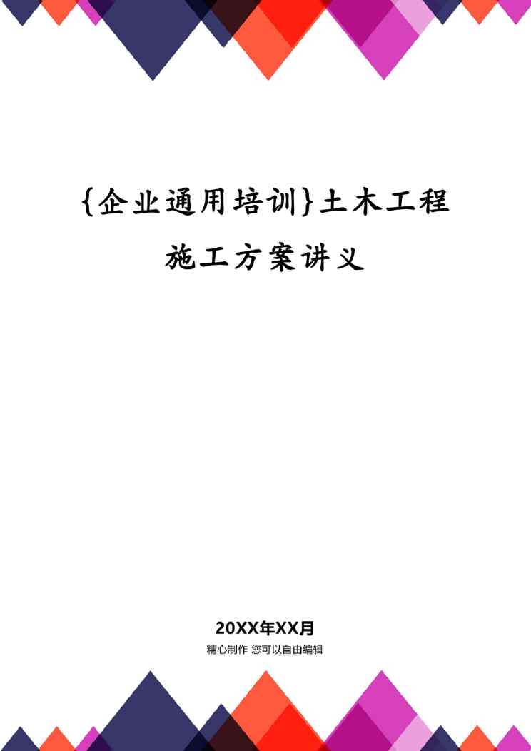 不久前,最新文档《{企业通用培训}土木工程施工方案讲义》全文正式在本站发布,感兴趣的用户可以下载阅读。 声明:本站所有文章,如无特殊说明或标注,均为本站原创发布。任何个人或组织,在未征得本站同意时,禁止复制、盗用、采集、发布本站内容到任何网站、书籍等各类媒体平台。如若本站内容侵犯了原著者的合法权益,可联系我们进行处理。
