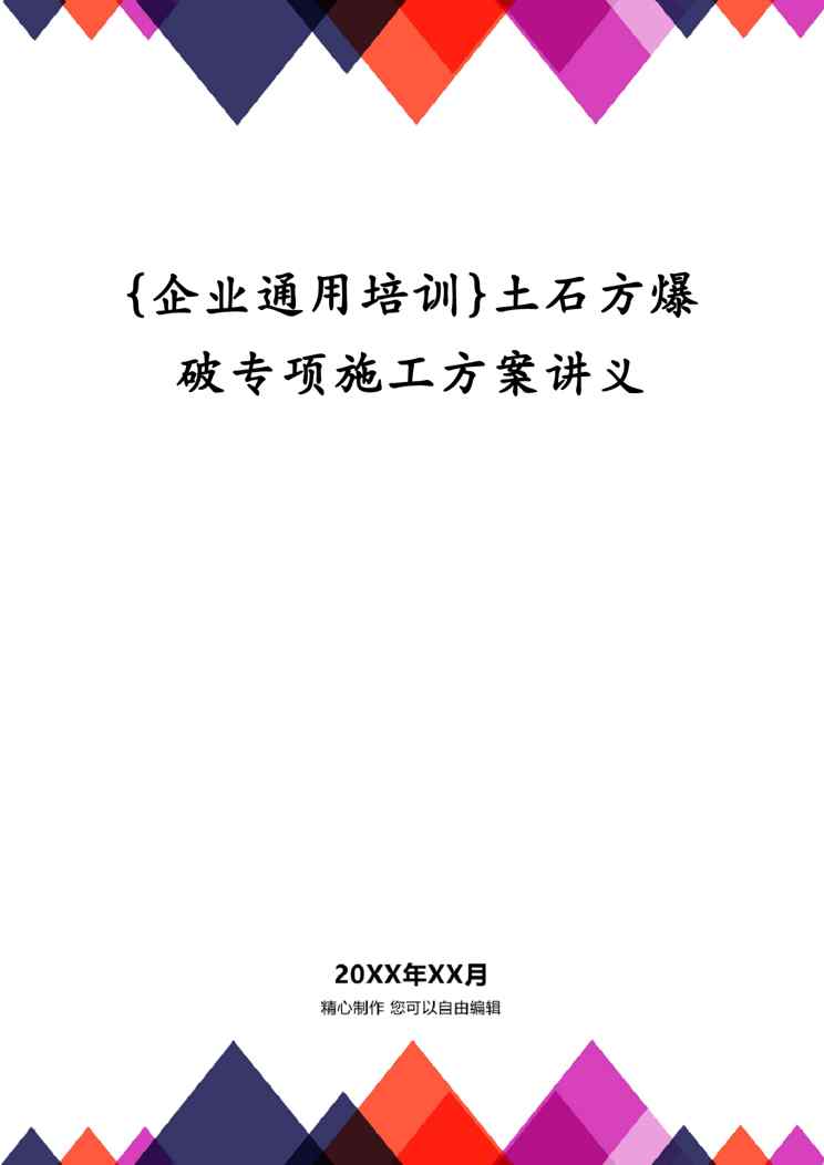 本站资深用户发布了最新的《{企业通用培训}土石方爆破专项施工方案讲义》文档,以下内容为预览,详细内容可下载阅读。 声明:本站所有文章,如无特殊说明或标注,均为本站原创发布。任何个人或组织,在未征得本站同意时,禁止复制、盗用、采集、发布本站内容到任何网站、书籍等各类媒体平台。如若本站内容侵犯了原著者的合法权益,可联系我们进行处理。