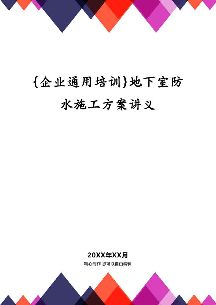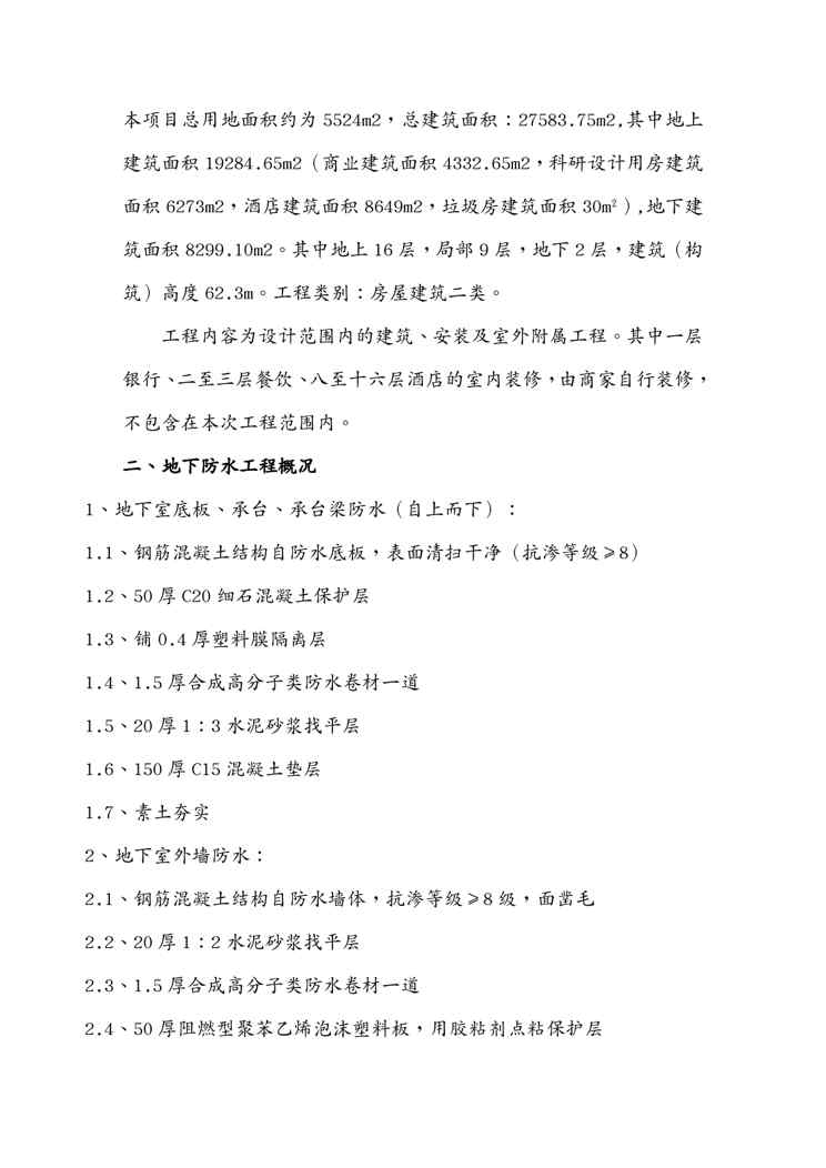 本站资深用户发布了最新的《{企业通用培训}地下室防水施工方案讲义》文档,以下内容为预览,详细内容可下载阅读。 声明:本站所有文章,如无特殊说明或标注,均为本站原创发布。任何个人或组织,在未征得本站同意时,禁止复制、盗用、采集、发布本站内容到任何网站、书籍等各类媒体平台。如若本站内容侵犯了原著者的合法权益,可联系我们进行处理。