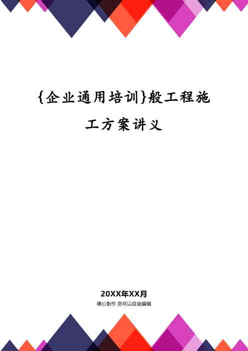 不久前,最新文档《{企业通用培训}般工程施工方案讲义》全文正式在本站发布,感兴趣的用户可以下载阅读。 声明:本站所有文章,如无特殊说明或标注,均为本站原创发布。任何个人或组织,在未征得本站同意时,禁止复制、盗用、采集、发布本站内容到任何网站、书籍等各类媒体平台。如若本站内容侵犯了原著者的合法权益,可联系我们进行处理。