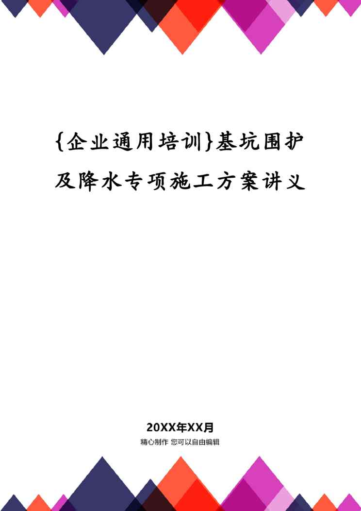 不久前,最新文档《{企业通用培训}基坑围护及降水专项施工方案讲义》全文正式在本站发布,感兴趣的用户可以下载阅读。 声明:本站所有文章,如无特殊说明或标注,均为本站原创发布。任何个人或组织,在未征得本站同意时,禁止复制、盗用、采集、发布本站内容到任何网站、书籍等各类媒体平台。如若本站内容侵犯了原著者的合法权益,可联系我们进行处理。