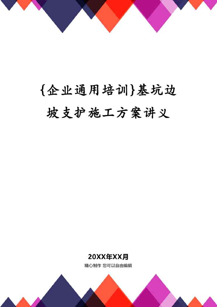 不久前,最新文档《{企业通用培训}基坑边坡支护施工方案讲义》全文正式在本站发布,感兴趣的用户可以下载阅读。 声明:本站所有文章,如无特殊说明或标注,均为本站原创发布。任何个人或组织,在未征得本站同意时,禁止复制、盗用、采集、发布本站内容到任何网站、书籍等各类媒体平台。如若本站内容侵犯了原著者的合法权益,可联系我们进行处理。