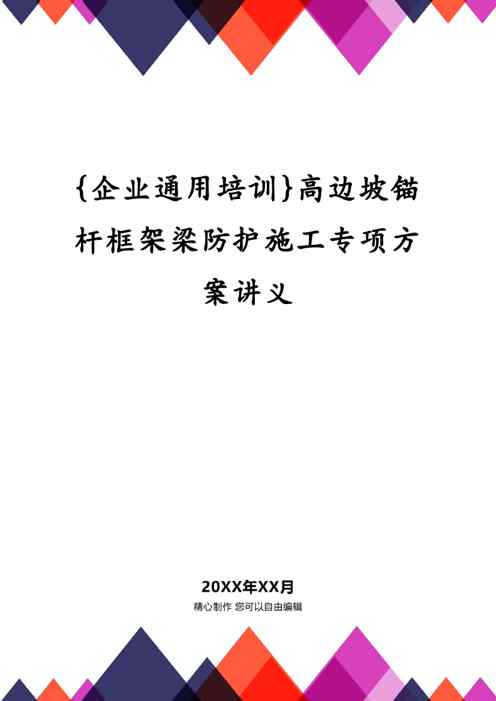 本站正式发布了《{企业通用培训}高边坡锚杆框架梁防护施工专项方案讲义》文档,文档详细内容可下载阅读。 声明:本站所有文章,如无特殊说明或标注,均为本站原创发布。任何个人或组织,在未征得本站同意时,禁止复制、盗用、采集、发布本站内容到任何网站、书籍等各类媒体平台。如若本站内容侵犯了原著者的合法权益,可联系我们进行处理。