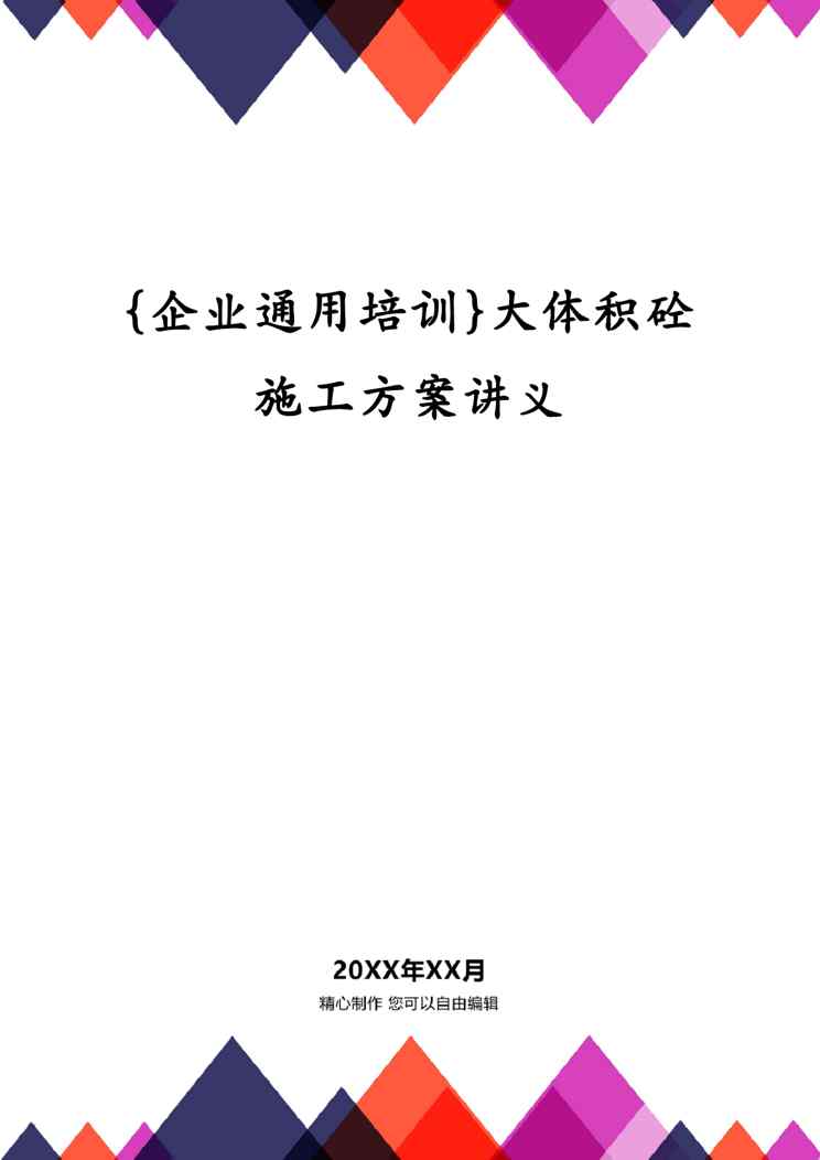 本站资深用户发布了最新的《{企业通用培训}大体积砼施工方案讲义》文档,以下内容为预览,详细内容可下载阅读。 声明:本站所有文章,如无特殊说明或标注,均为本站原创发布。任何个人或组织,在未征得本站同意时,禁止复制、盗用、采集、发布本站内容到任何网站、书籍等各类媒体平台。如若本站内容侵犯了原著者的合法权益,可联系我们进行处理。