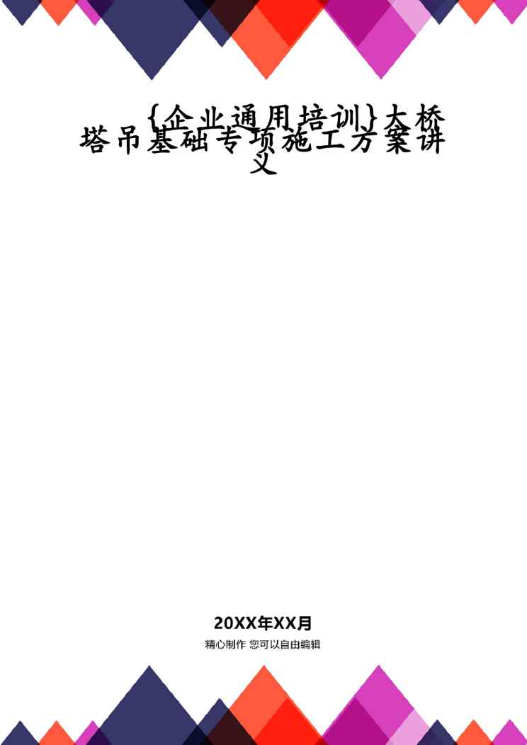 本站正式发布了《{企业通用培训}大桥塔吊基础专项施工方案讲义》文档,文档详细内容可下载阅读。 声明:本站所有文章,如无特殊说明或标注,均为本站原创发布。任何个人或组织,在未征得本站同意时,禁止复制、盗用、采集、发布本站内容到任何网站、书籍等各类媒体平台。如若本站内容侵犯了原著者的合法权益,可联系我们进行处理。