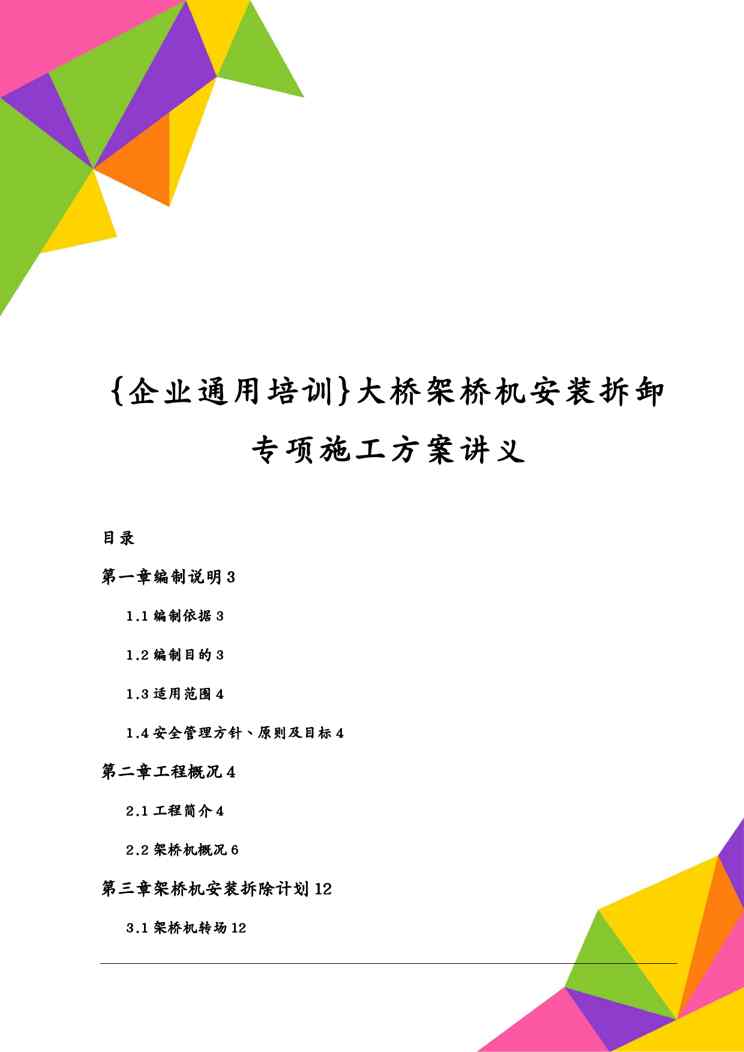 本站正式发布了《{企业通用培训}大桥架桥机安装拆卸专项施工方案讲义1609152373》文档,文档详细内容可下载阅读。 声明:本站所有文章,如无特殊说明或标注,均为本站原创发布。任何个人或组织,在未征得本站同意时,禁止复制、盗用、采集、发布本站内容到任何网站、书籍等各类媒体平台。如若本站内容侵犯了原著者的合法权益,可联系我们进行处理。