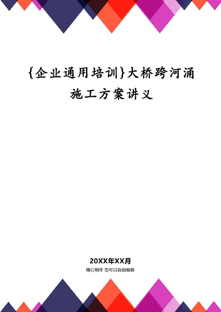 本站资深用户发布了最新的《{企业通用培训}大桥跨河涌施工方案讲义》文档,以下内容为预览,详细内容可下载阅读。 声明:本站所有文章,如无特殊说明或标注,均为本站原创发布。任何个人或组织,在未征得本站同意时,禁止复制、盗用、采集、发布本站内容到任何网站、书籍等各类媒体平台。如若本站内容侵犯了原著者的合法权益,可联系我们进行处理。