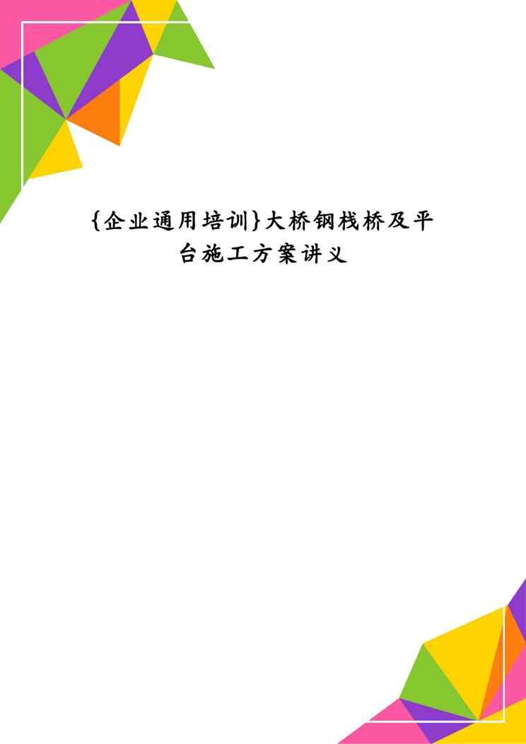 本站资深用户发布了最新的《{企业通用培训}大桥钢栈桥及平台施工方案讲义1609152373》文档,以下内容为预览,详细内容可下载阅读。