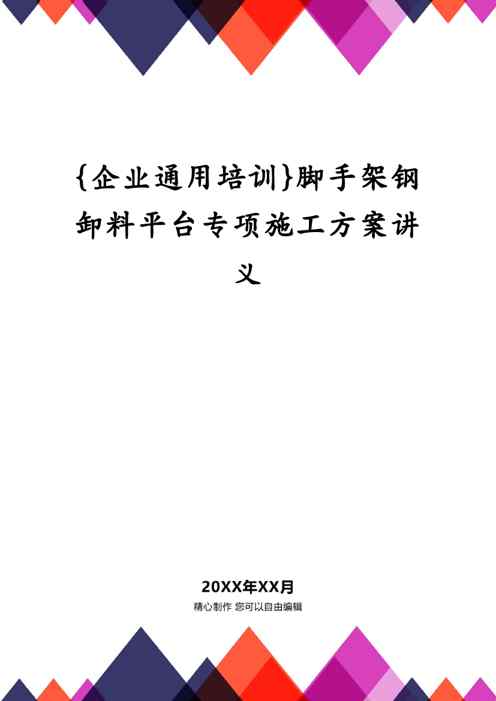 本站正式发布了《{企业通用培训}脚手架钢卸料平台专项施工方案讲义》文档,文档详细内容可下载阅读。 声明:本站所有文章,如无特殊说明或标注,均为本站原创发布。任何个人或组织,在未征得本站同意时,禁止复制、盗用、采集、发布本站内容到任何网站、书籍等各类媒体平台。如若本站内容侵犯了原著者的合法权益,可联系我们进行处理。