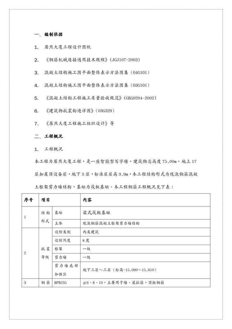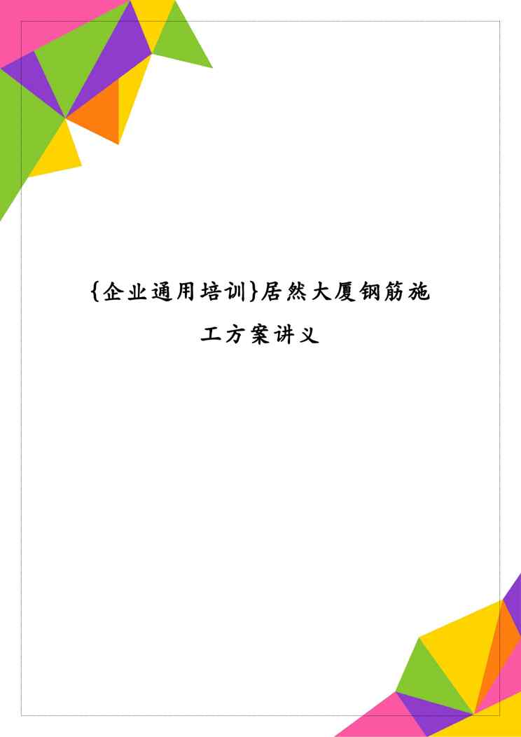 本站资深用户发布了最新的《{企业通用培训}居然大厦钢筋施工方案讲义1609152370》文档,以下内容为预览,详细内容可下载阅读。 声明:本站所有文章,如无特殊说明或标注,均为本站原创发布。任何个人或组织,在未征得本站同意时,禁止复制、盗用、采集、发布本站内容到任何网站、书籍等各类媒体平台。如若本站内容侵犯了原著者的合法权益,可联系我们进行处理。
